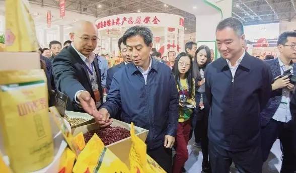 (2016山西糧食(小雜糧玉米)產(chǎn)銷銜接會期間,省委常委、常務(wù)副省長高建民在市委書記王清憲陪同下在呂梁山雜糧(農(nóng)副產(chǎn)品)交易中心巡館。記者王益煒攝)